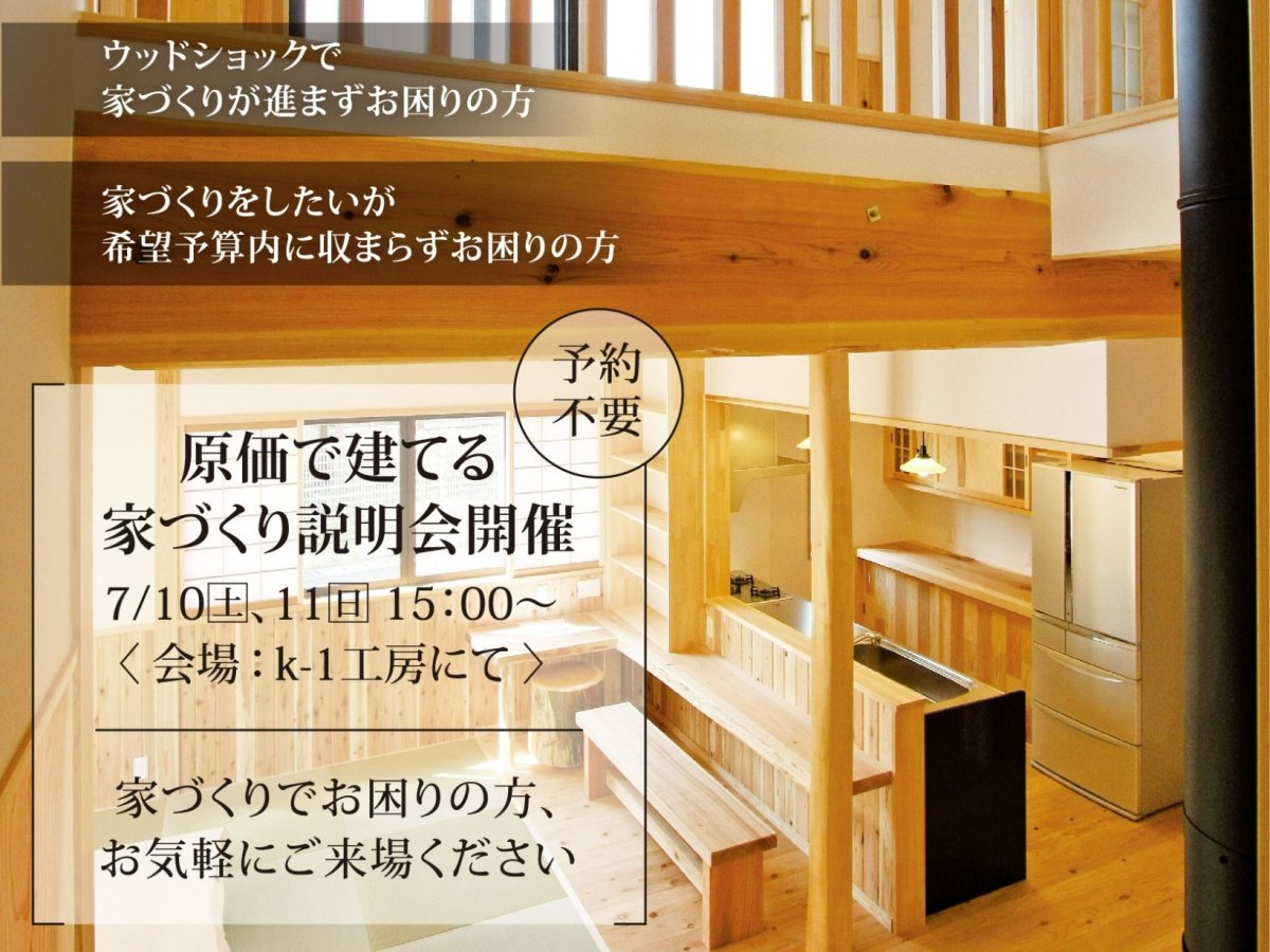 7月10日と11日、両日15:00~原価で建てる家づくり説明会を開催します。