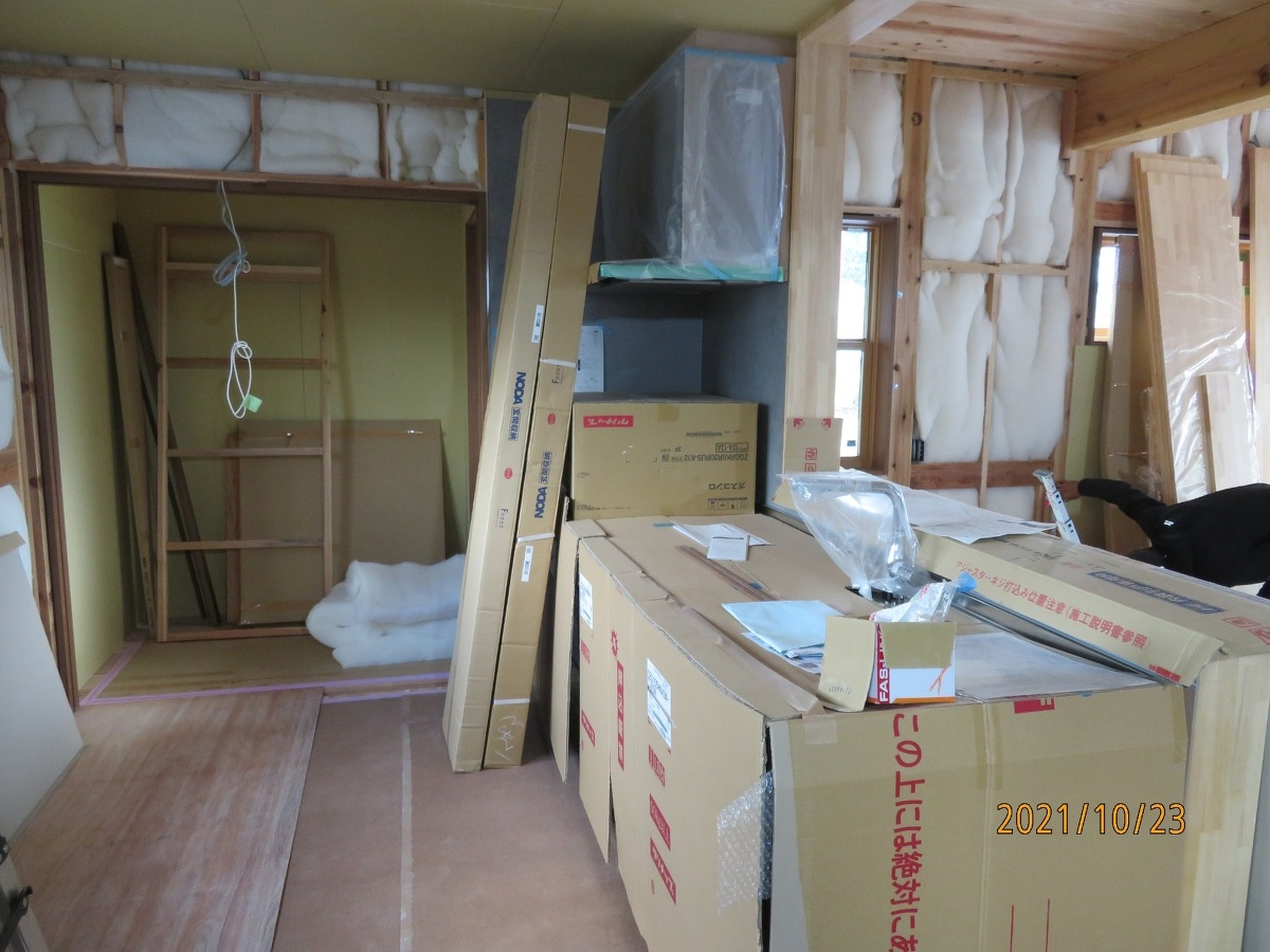 OS72号 「梁が見える和モダンの家」第18回目 おはようございます。 k-1工房須藤です。 梁が見える和モダンの家ですが、着々と工事が進んでおりますので現場進捗をさせていただきます。 大工オリジナルの棚や机がほぼ完成 大工が家の間取り合わせてオリジナルで作成した、棚や机です。 手作りで作ってますので、温もりのある造作家具となります。 下地処理が完了 玄関前は下地処理が完了し、部屋の壁も壁紙を貼る前のパテ処理が完了しています。 工事は順調に進んでますので、このまま事故無く、ミス無く、ケガ無く進めていきたいと思います。