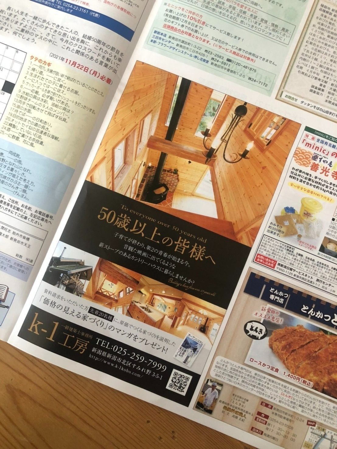メディア掲載情報|minic2021年11月号に掲載いただきました k-1工房須藤です。 今回も新潟県新発田市にて発行されている、minicに掲載させていただきました。 気温が下がりこれから雪が降ってさらに寒くなる季節が来ます。 昔見た映画に出てくるような薪ストーブのある「温もりのあるカントリースタイルのおうち」で暮らしてみませんか? 皆様の夢やこだわりを応援します。