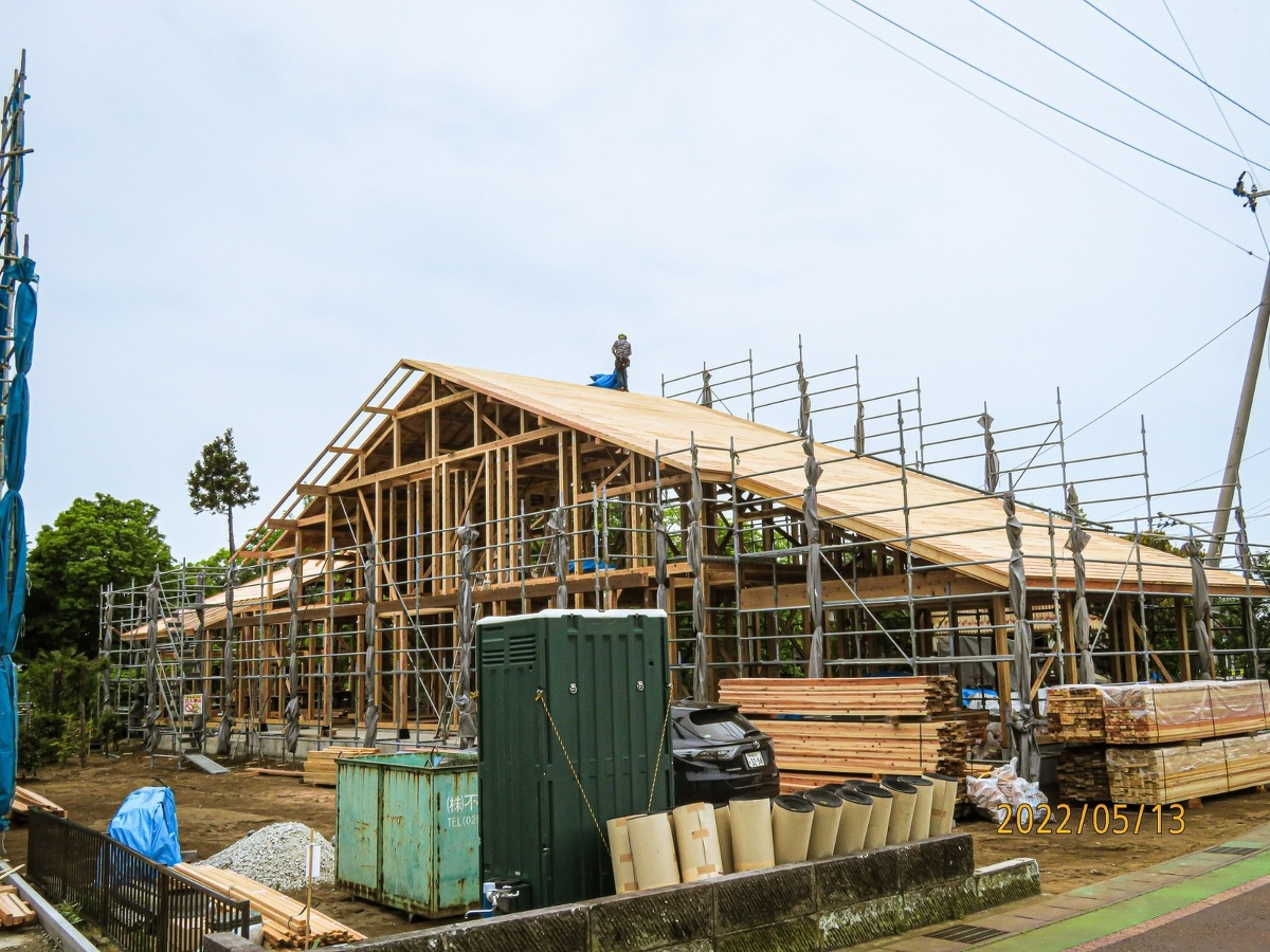 今回は家の大きさがあるだけでなく、大屋根のスタイルでつくってますので、とても存在感のある家になりそうです。