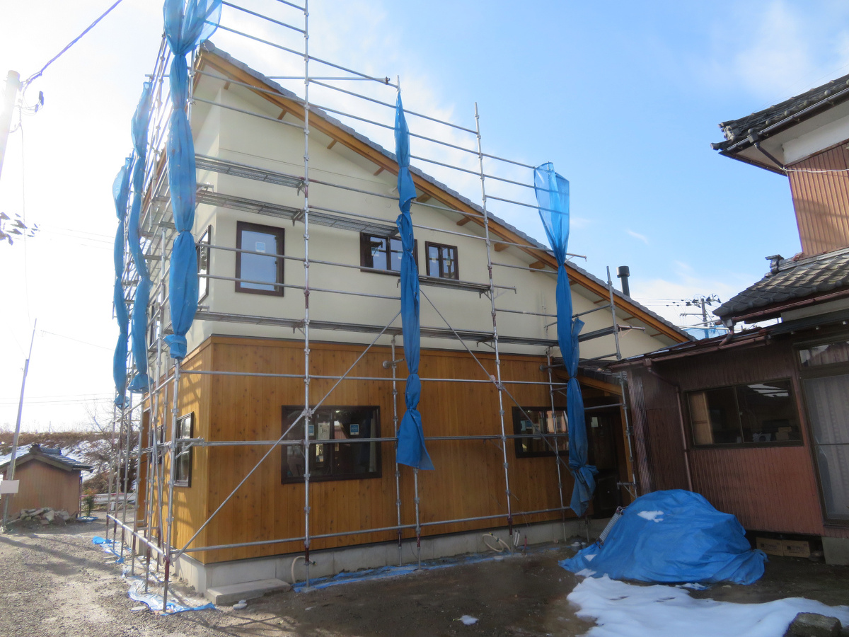 OS78号「薪ストーブのある家」第9回目|外壁リシン吹付完了