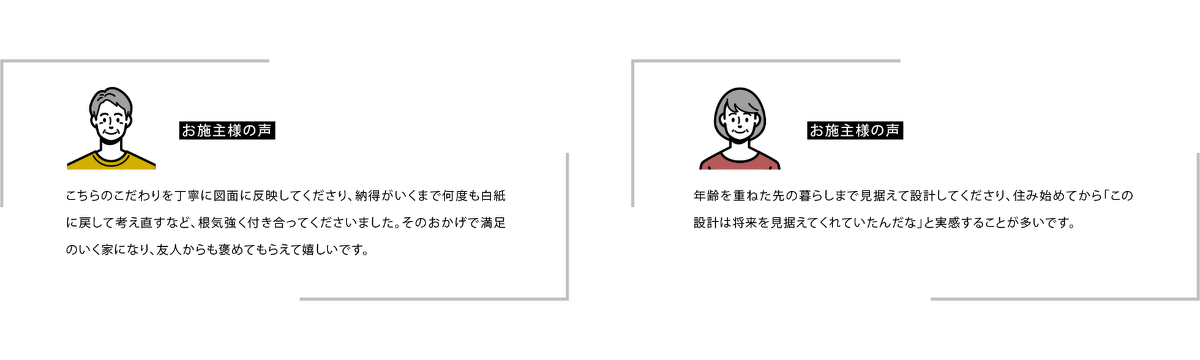 中間マージンなどの無駄なコストが発生せず、お客様のご予算内でできる限り多くのこだわりを実現することが可能です。