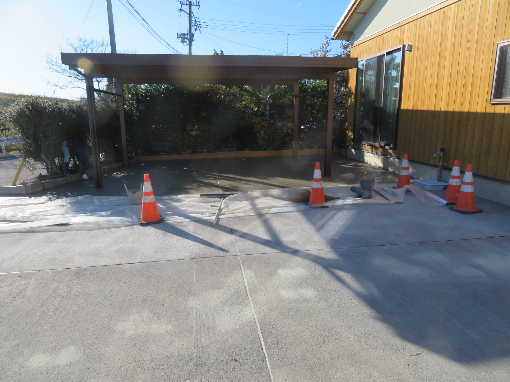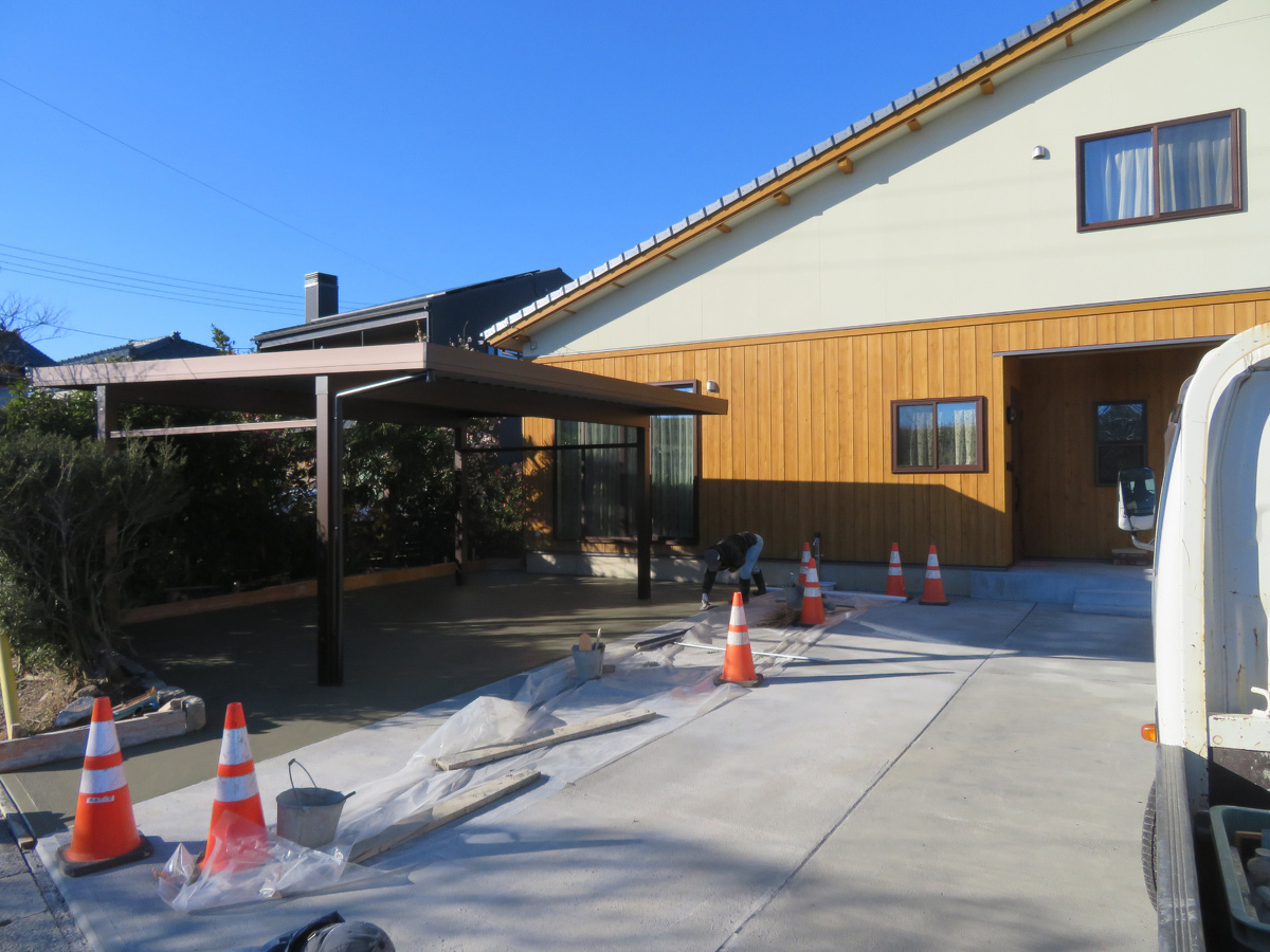 OS78号「薪ストーブのある家」第18回目|土間コンクリートの打設が完了 k-1工房須藤です。 OS78号「薪ストーブのある家」の追加工事の進捗です。 先日完成しましたカーポートにコンクリートを打設しました。 前面道路からカーポートと玄関ポーチまでをコンクリートで打設。 これですべての工事が完了となりました。 k1工房の完成作品はコチラ