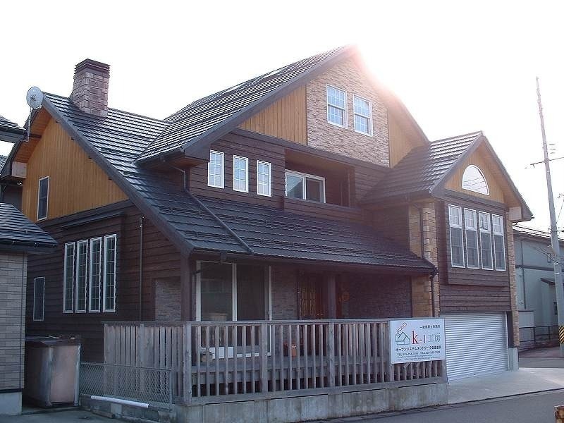 無垢の木に囲まれた暖炉のある家 場所 新潟市 完成 平成13年8月 工事原価 2,475万円 延床面積 69坪 施工面積 83坪 工法 木造在来工法3階建 外壁 デザインが豊かな人造石、コルブストーン 玄関収納棚 作り付けの玄関収納棚 薪ストーブ 世界一炎の綺麗な暖炉、ヨツール サッシ アンダーセンの木製サッシ テーブル 無垢の杉材を使った一枚板のテーブル フロアー 天然ワックスのみで仕上げた無垢のフロアー(パイン) 和室 化学物質を一切含まない天然塗装材チャフオール 子供室 床・壁・天井には無垢の羽目板を使用