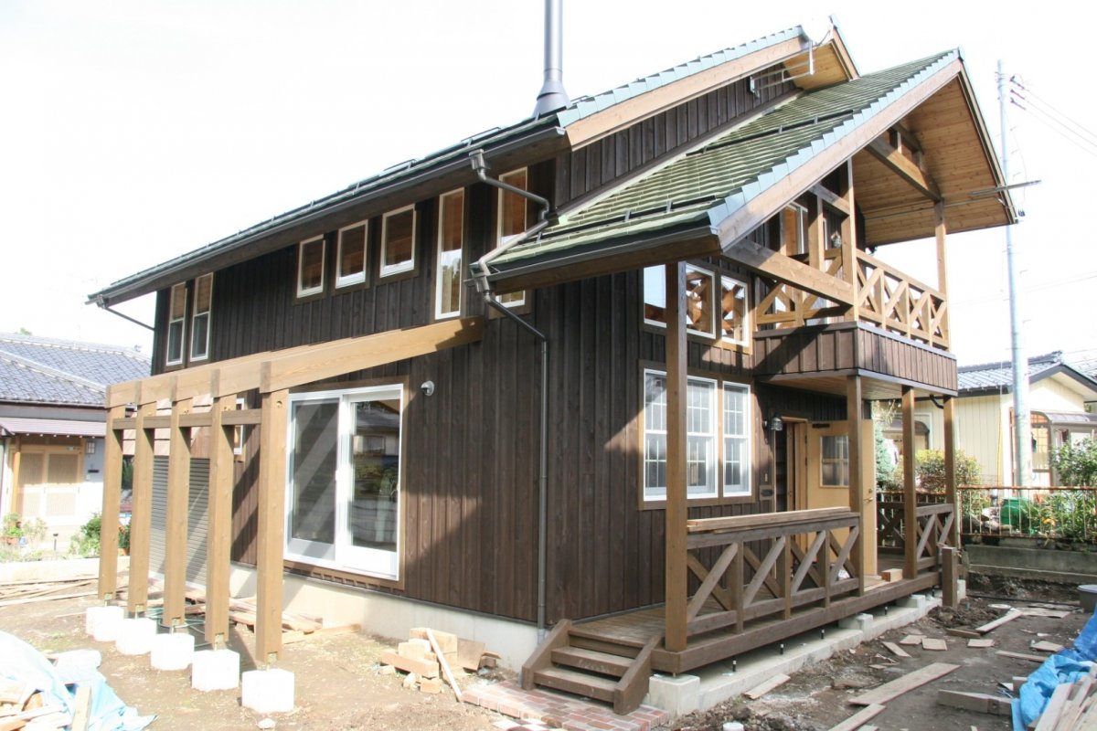OS19 緑の中のカントリ-ハウス 場所 田上町 完成 平成19年10月 工事原価 1,559万円 延床面積 38.00坪 施工面積 46.50坪 工法 木造2階建在来工法 外観1 外観2 外観のアクセントにした梁 シャッターボックスを隠したレッドシダー 玄関ドア リビング入り口 手作りの手洗い リビング ダイニング キッチン 飾り棚 薪ストーブはアンコール リビングの吹抜け 階段 玄関ホールとダイニングに入れたステンドグラス タイル張りは施主 2階ホール 2階ホールのガラスの飾り棚 2階からリビングを見る こだわりのヒンジは施主が支給 2階洋室1 2階洋室2 照明も施主が支給 玄関正面 枕木水栓 玄関ポーチから上を見る