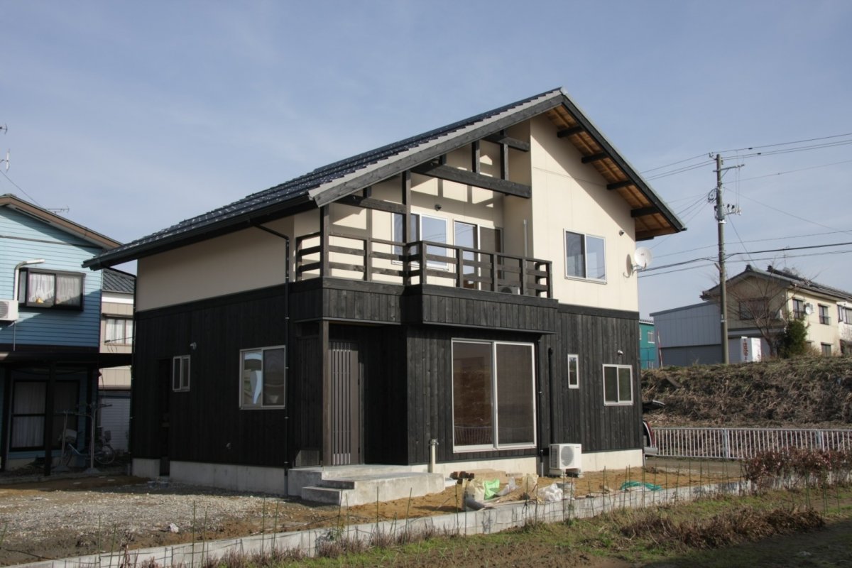 OS24 小上がりのある家 場所 燕市 完成 平成20年12月 工事原価 1,495万円 延床面積 38坪 施工面積 43坪 工法 木造在来工法2階建 外観1 外観2 外観3 ダイニング キッチン リビング 納戸 ユニットバス 階段 トイレ 寝室 子供室 サンルーム バルコニー ウォークインクローゼット 玄関 玄関ポーチ 木製建具 収納