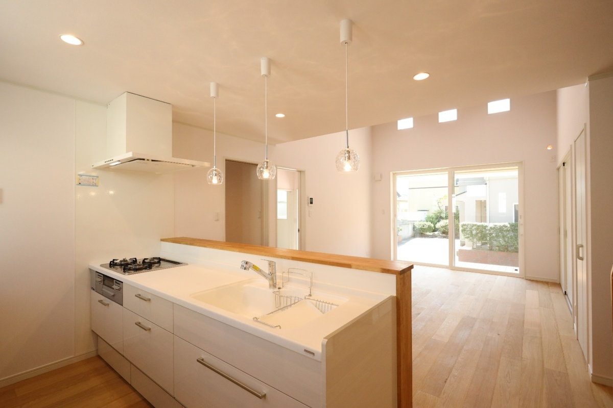 OS70 カントリースタイルの平屋建て 場所 新潟市 完成 令和3年5月 工事原価 1,398万円 延床面積 26.49坪 施工面積 30.99坪 工法 木造2階建在来工法 外観 リビング① リビング② キッチン① 玄関ドア 洗面台収納 和室 洋室① 手洗器 玄関 キッチンペンダントライト 外観② ウォークインクローゼット 浴室 洋室② 洋室③