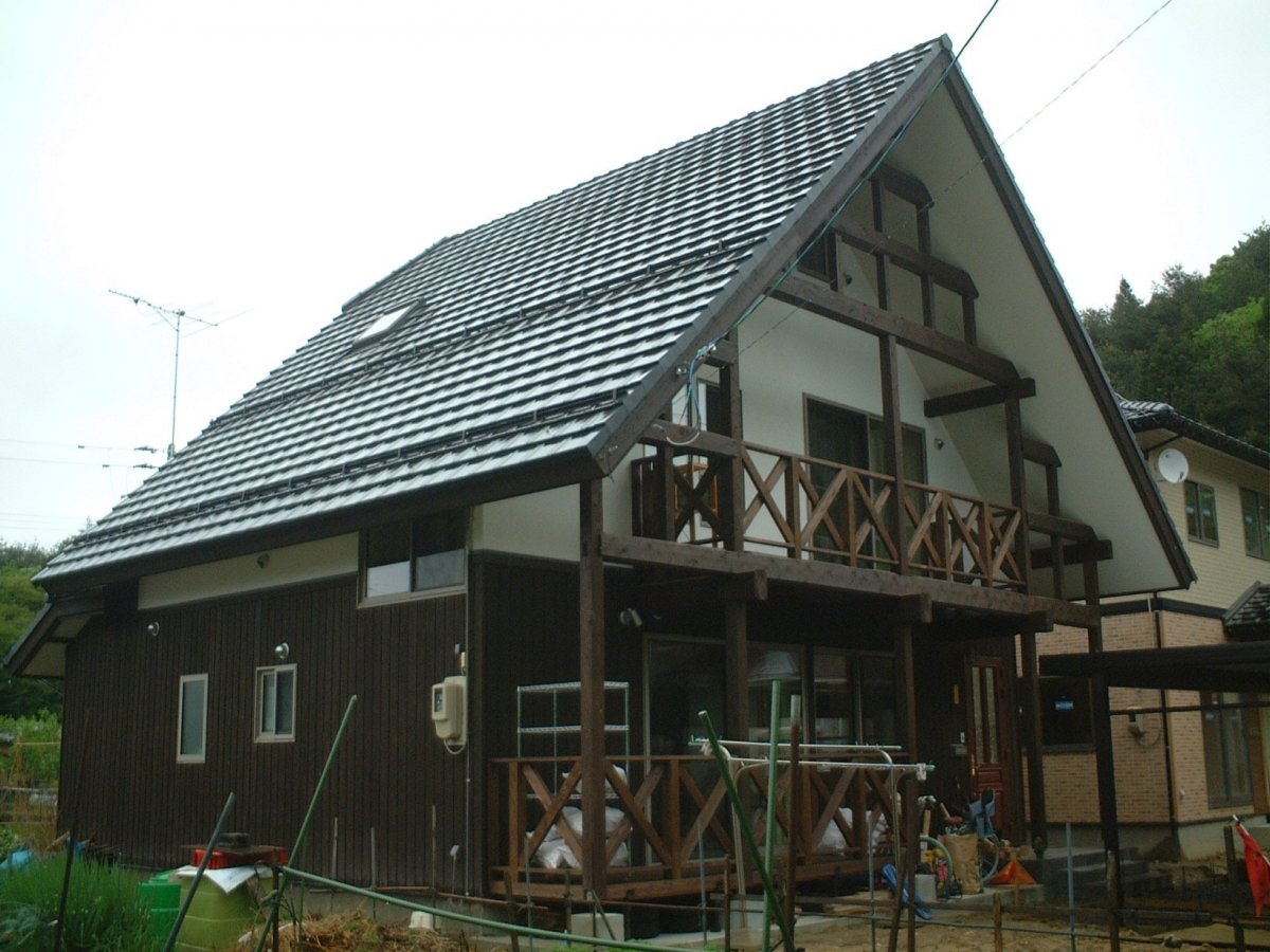 OS12 新月の木でつくる「蔵造りの家」 場所 新発田市 完成 平成18年4月 工事原価 1,545万円 延床面積 39坪 施工面積 51坪 工法 木造2階伝統工法 新月伐採からスタート 大工の墨付 丸太の木組み 登り梁の合掌組 ログハウス風の外観 裏から見ると合掌作り風 リビング入り口の建具 杉板のダイニングテーブル ダイニング上の梁組 無垢の木で作った階段 小上がりの和室 作り付けのTV台 薪ストーブはヨツール500 階段から吹抜けを見る トイレ入り口の建具 寝室入り口の建具 子供室のロフトへ上がる箱階段 子供室のロフト 吹抜けのロフトから下を見る 吹抜けのロフト 寝室からテラスへ 吹抜けのロフトから外を見る